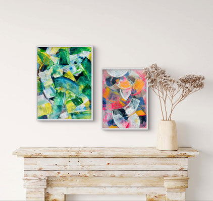 Grün-Gelb: Höhe 44cm x Breite 33 cm Preis ohne Rahmen: 231,- €